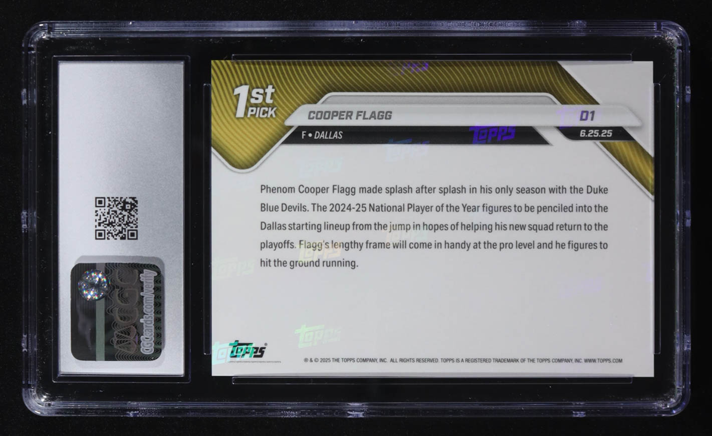 Cooper Flagg 2025 Topps Now Draft #D1 RC (CGC 10)