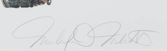 Custom frame measures 22" x 25" in size and features an original art print that has been hand-signed by Cal Ripken Jr. (Baltimore Orioles, HOF). Please see photos for details regarding the condition of the item. Note that the item has been labeled Limited Edition # 143 / 1000.