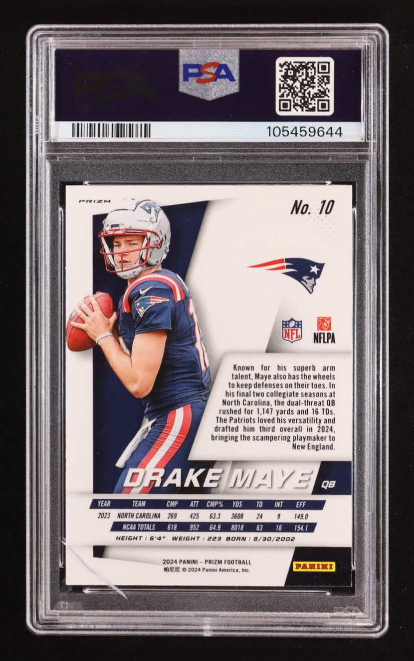 Drake Maye 2024 Panini Prizm Flashback Rookie No Huddle #10 RC (PSA 10)
