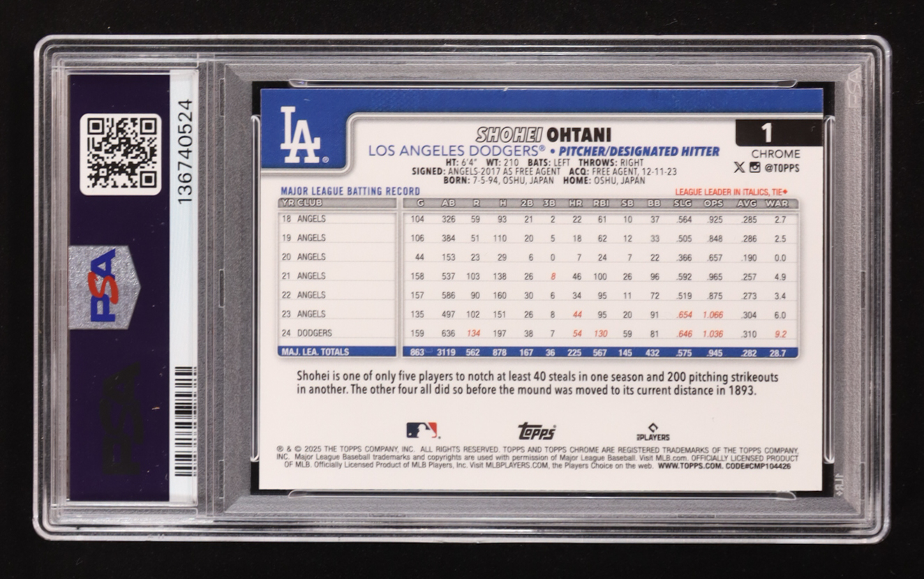 Shohei Ohtani 2025 Topps Chrome Sepia Refractor #1 (PSA 10)