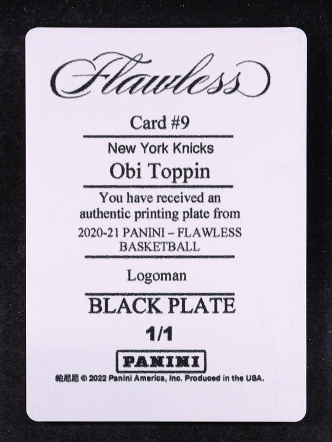 Obi Toppin 2020-21 Flawless Logoman Printing Plates Black #9 #1/1 RC