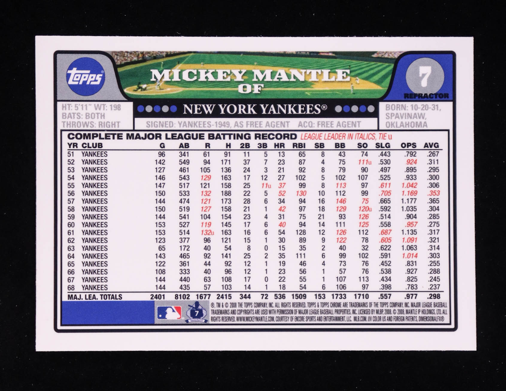 Mickey Mantle 2008 Topps Chrome Blue Refractors #7