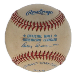 Rawlings Official American League Baseball. Hand-signed by Bert Blyleven (Minnesota Twins, HOF). Please note, the baseball is naturally toned and stained.