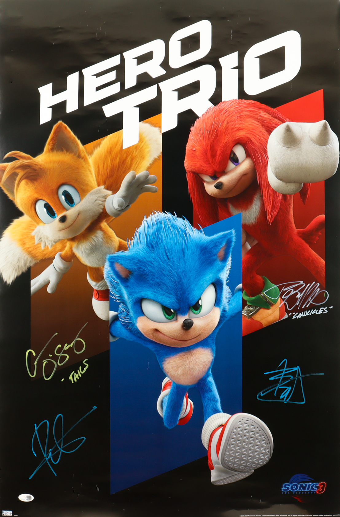 "Sonic the Hedgehog 3" | 22x34 Poster Signed by (4) with Ben Schwartz, Roger Craig Smith (JSA)