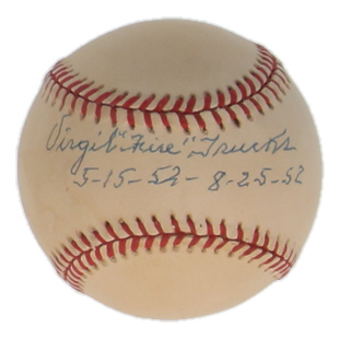 Virgil Trucks Signed OAL Baseball Inscribed "5-15-52 - 8-25-52" (JSA)