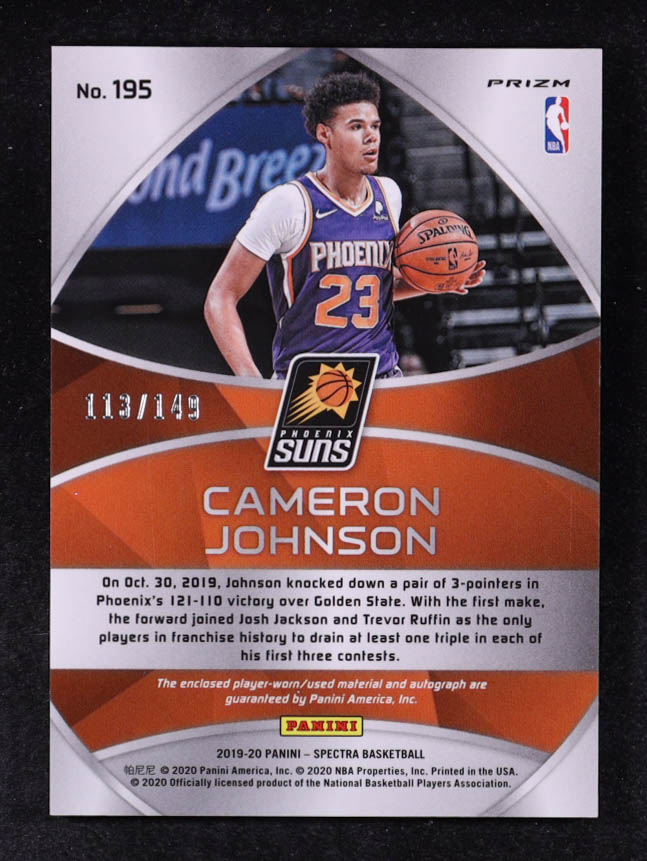 Cameron Johnson 2019-20 Panini Spectra #195 #113/149 JSY AU RC