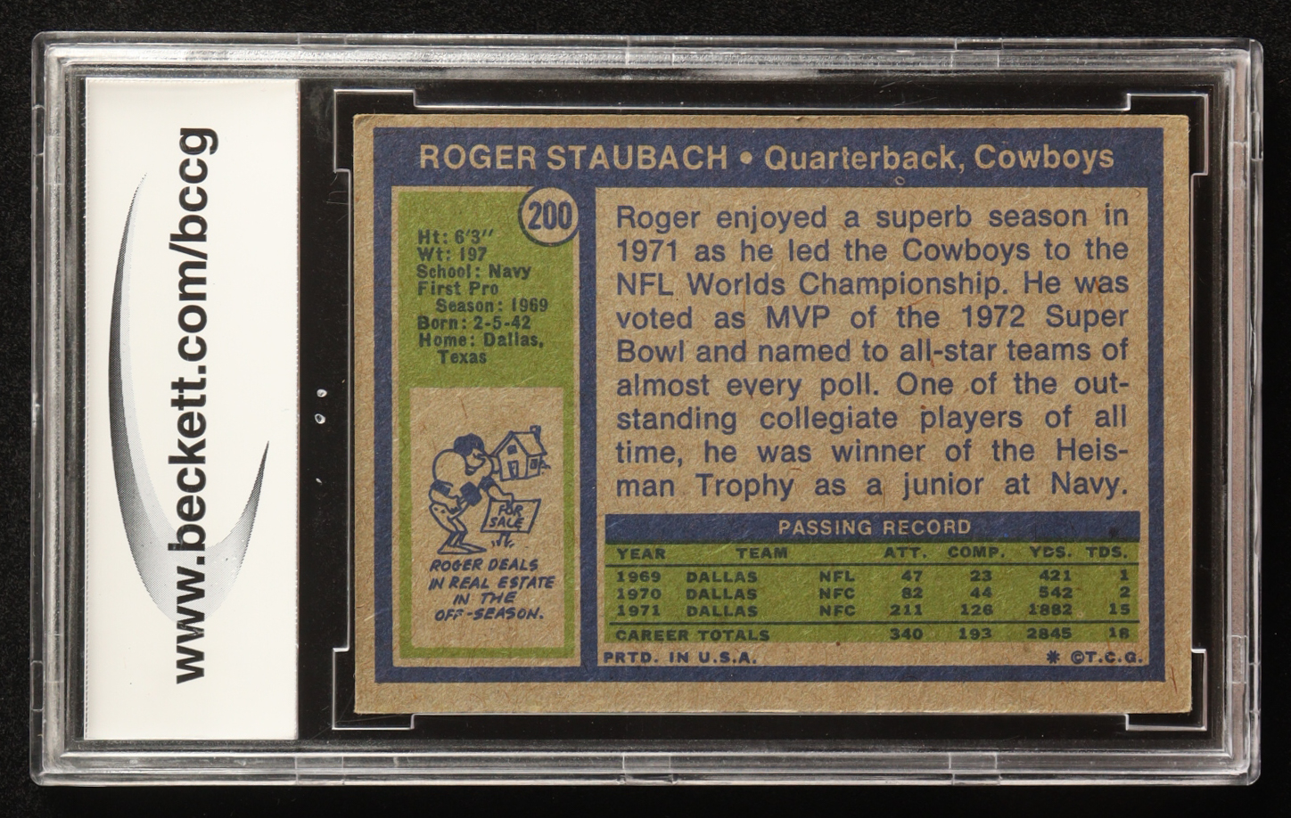 Roger Staubach 1972 Topps #200 RC (BCCG 8)