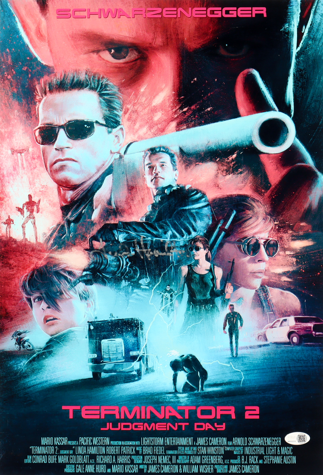 Poster measures approximately 12" x 19" in size. Hand-signed by Linda Hamilton (Sarah Connor). Please note the faded and scuffed signature.