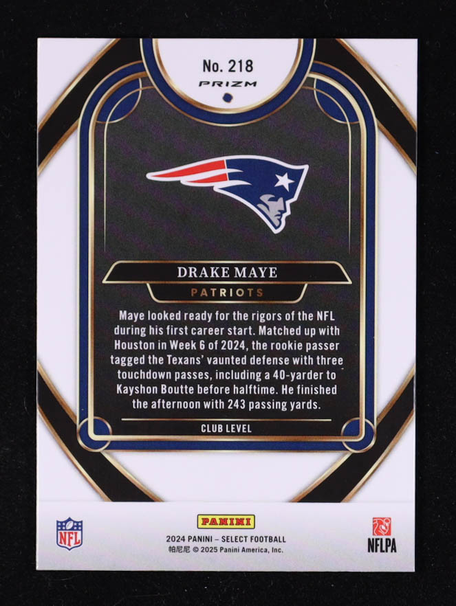 Drake Maye 2024 Select Prizm Black and Green Shock #218 RC