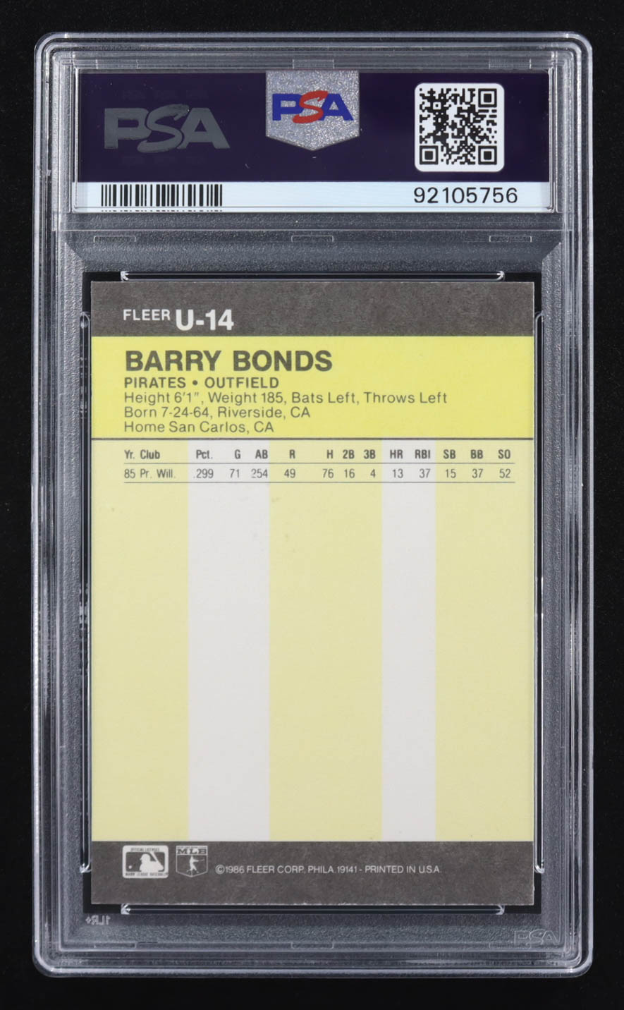 Barry Bonds 1986 Fleer Update #U14 RC (PSA 8)