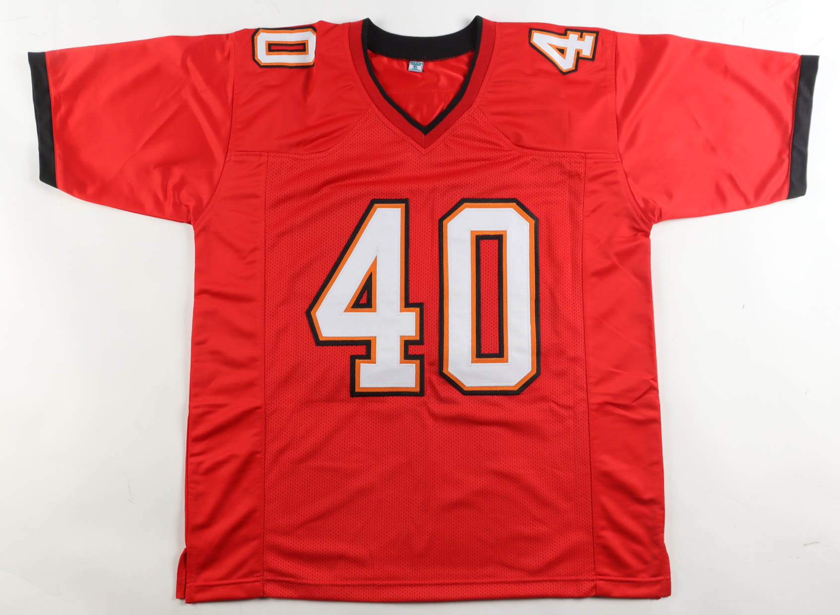 Custom jersey with everything sewn on, size XL. Hand-signed by Mike Alstott.