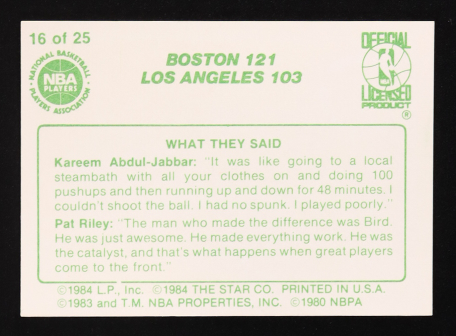Kareem Abdul-Jabbar 1984 Star Celtics Champs #16