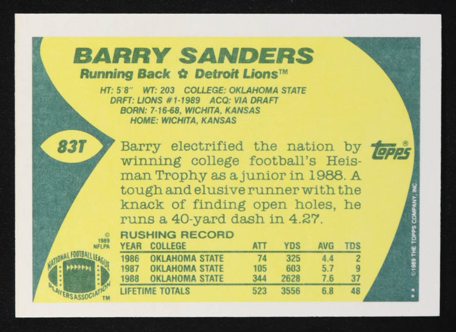Barry Sanders 1989 Topps Traded #83T RC