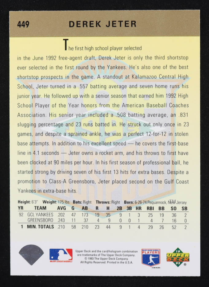 Derek Jeter 1993 Upper Deck #449 RC