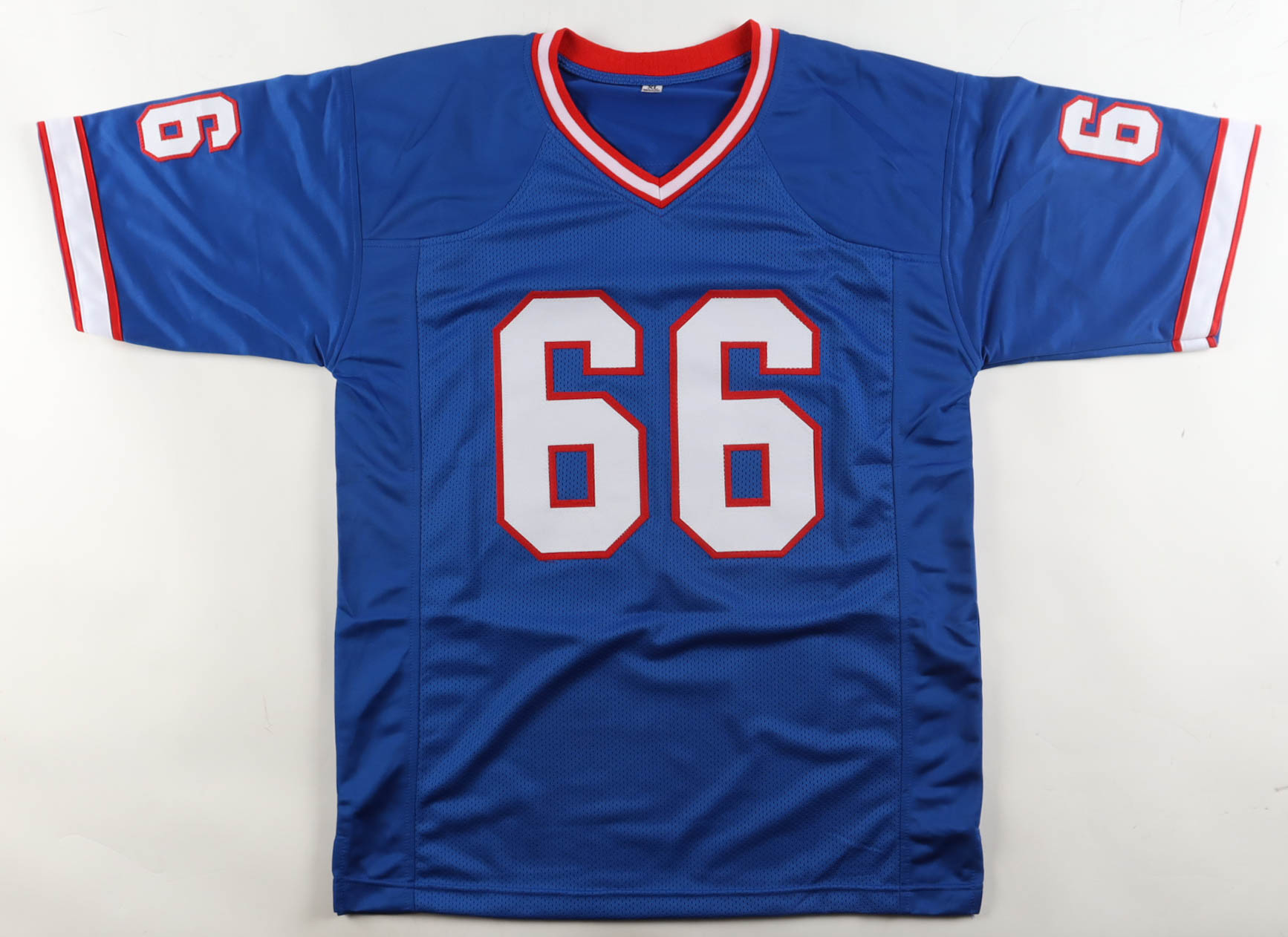 Custom jersey with everything sewn on, size XL. Hand-signed and inscribed by Billy Shaw (Buffalo Bills, HOF).