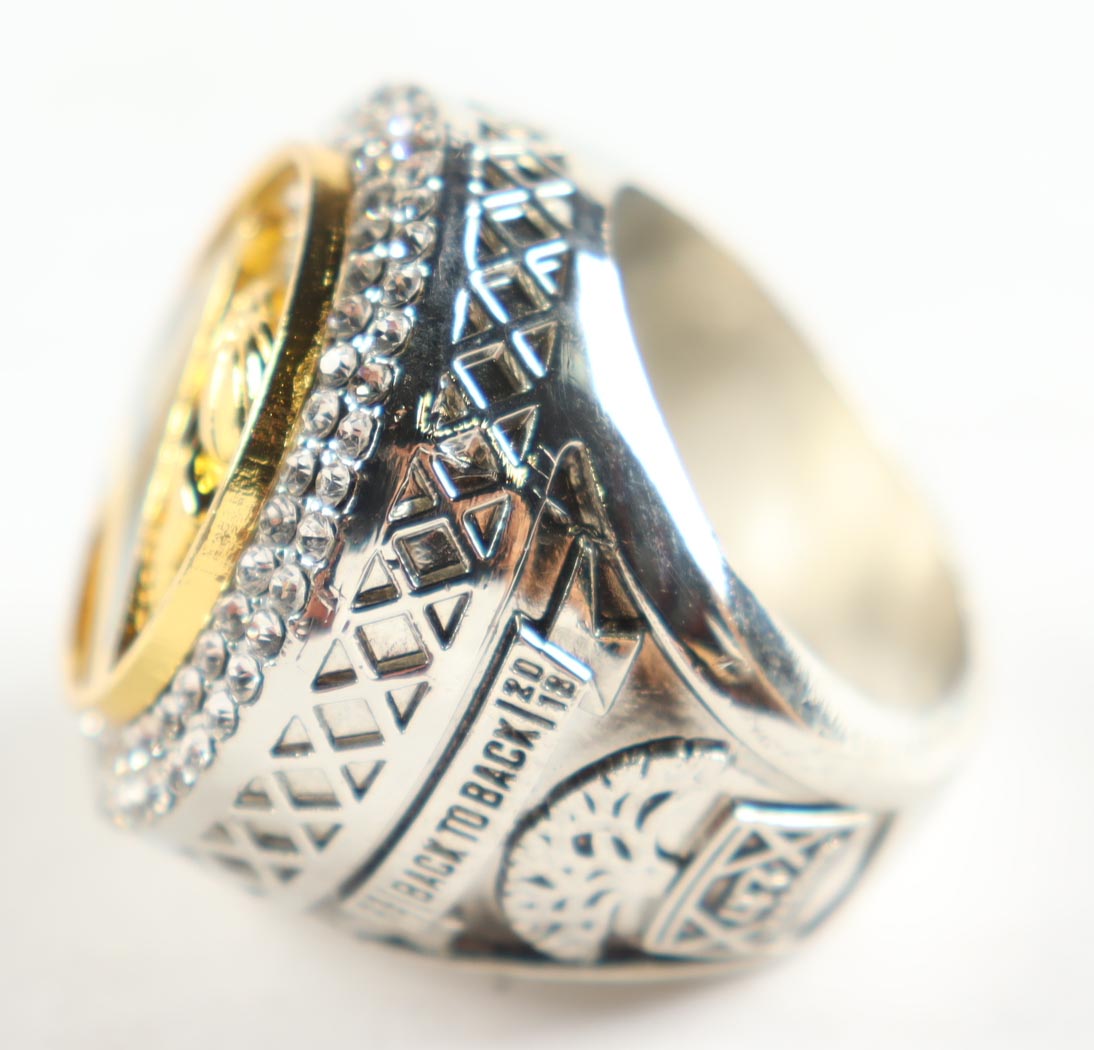 2018 Golden State Warriors NBA Finals Replica Ring. Please see photos for details regarding the condition of the item. Note that the item is unsigned and does come with the original packaging.