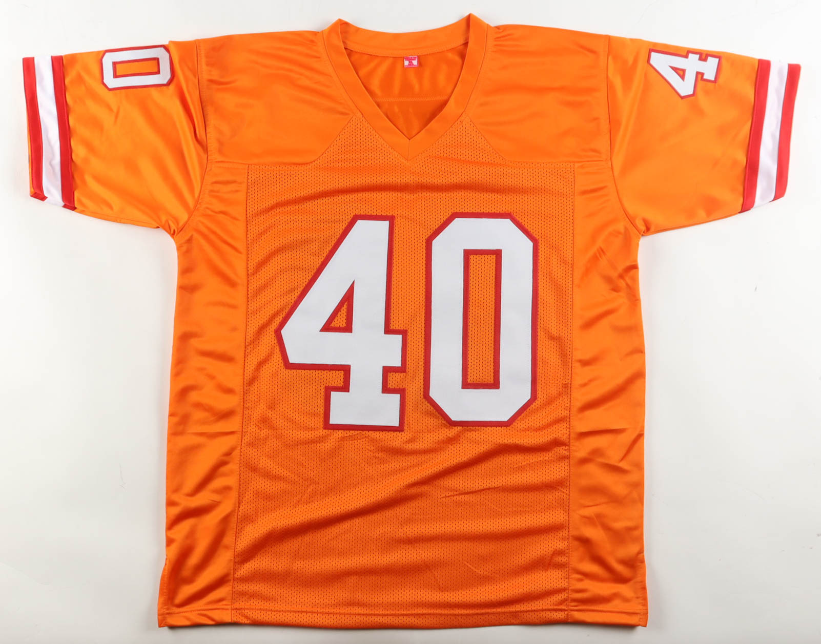 Custom jersey with everything sewn on, size XL. Hand-signed by Mike Alstott.