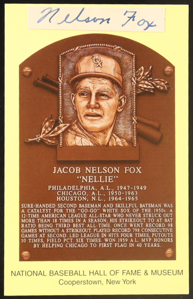 Nelson Fox Signed Cut on Hall of Fame Plaque Postcard (JSA)