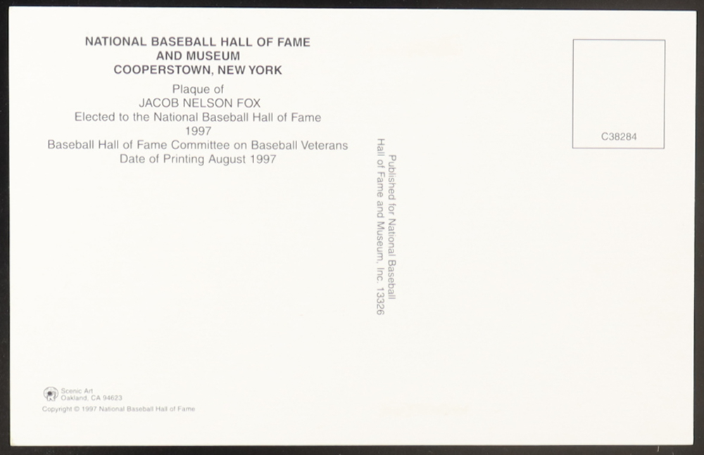 National Baseball Hall Of Fame Postcard that has been hand-signed on a cut by Nelson Fox (D. 1975, Chicago White Sox, HOF).