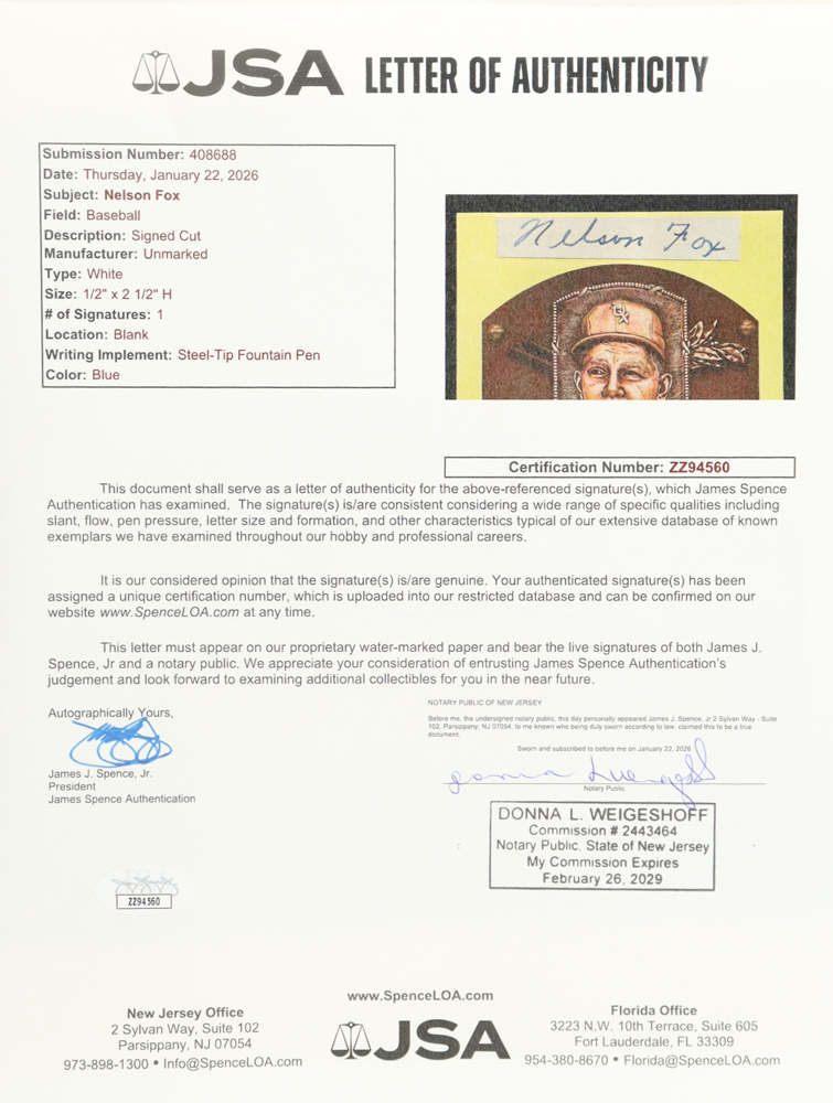 The autograph(s) includes an official James Spence Authentication (JSA) hologram and matching LOA for authenticity purposes.
