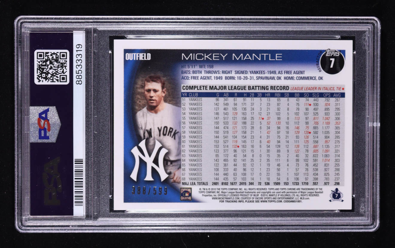 Mickey Mantle 2010 Topps Chrome Purple Refractors #7 #388/599 (PSA 9)