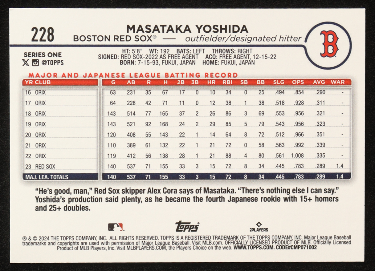 Masataka Yoshida 2024 Topps Royal Blue #228