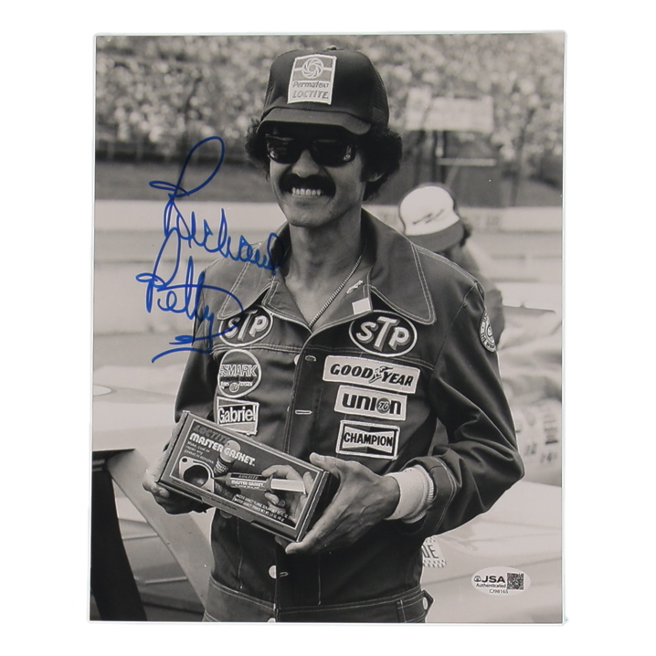 Photo measures 8" x 10" in size and has been hand-signed by Richard Petty (HOF).