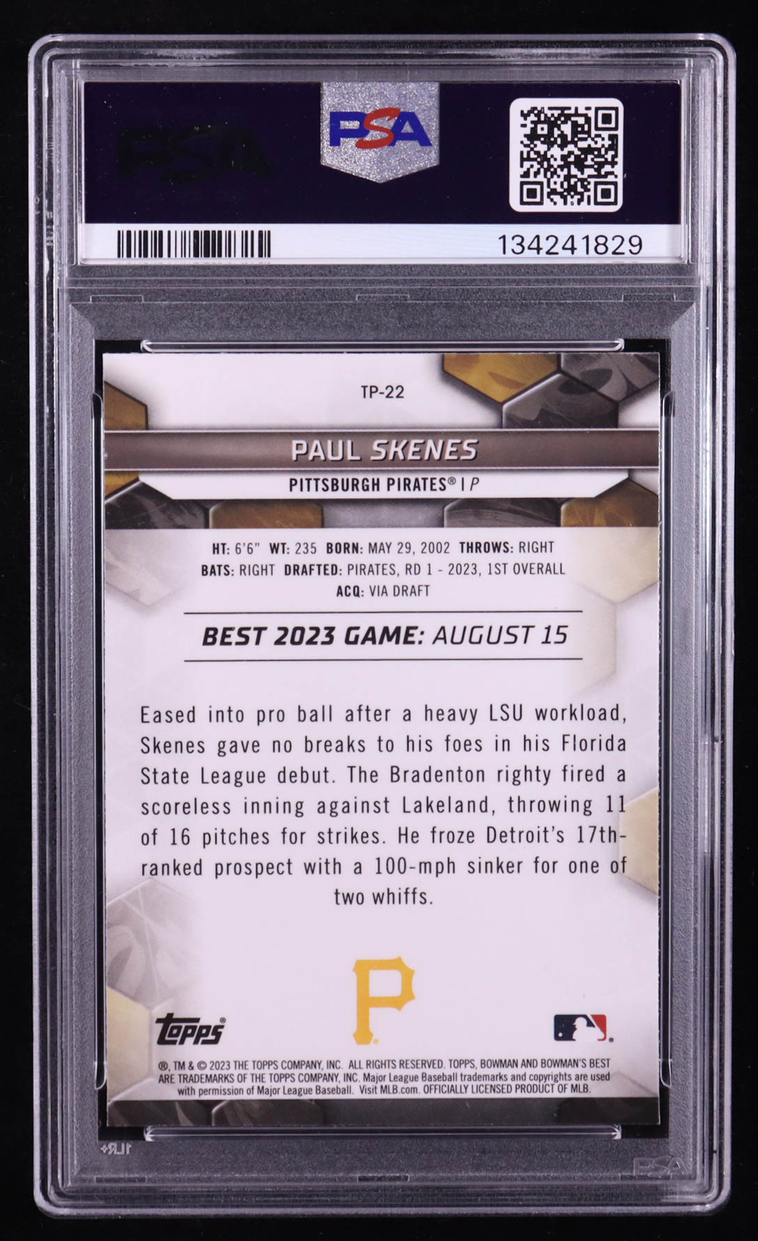 Paul Skenes 2023 Bowman's Best Top Prospects #TP22 RC (PSA 10)