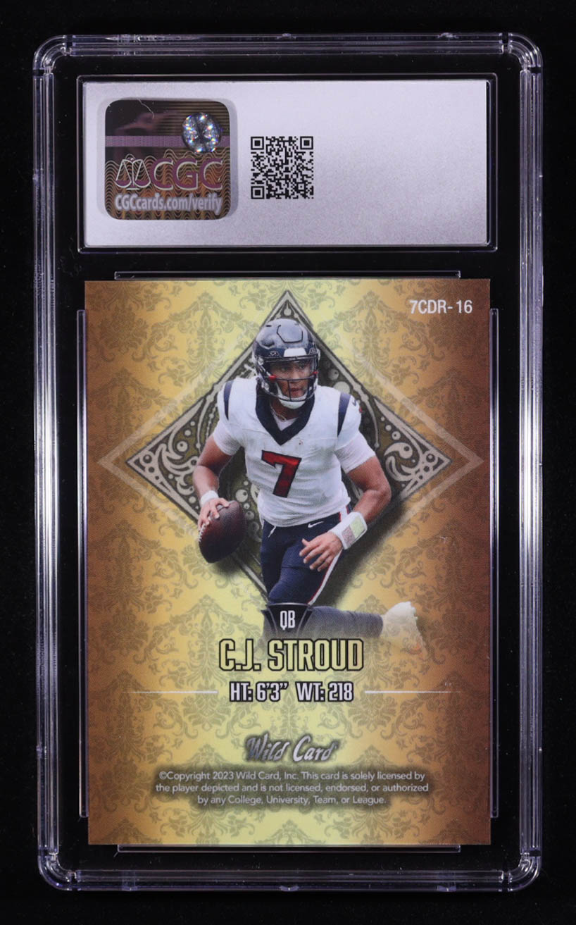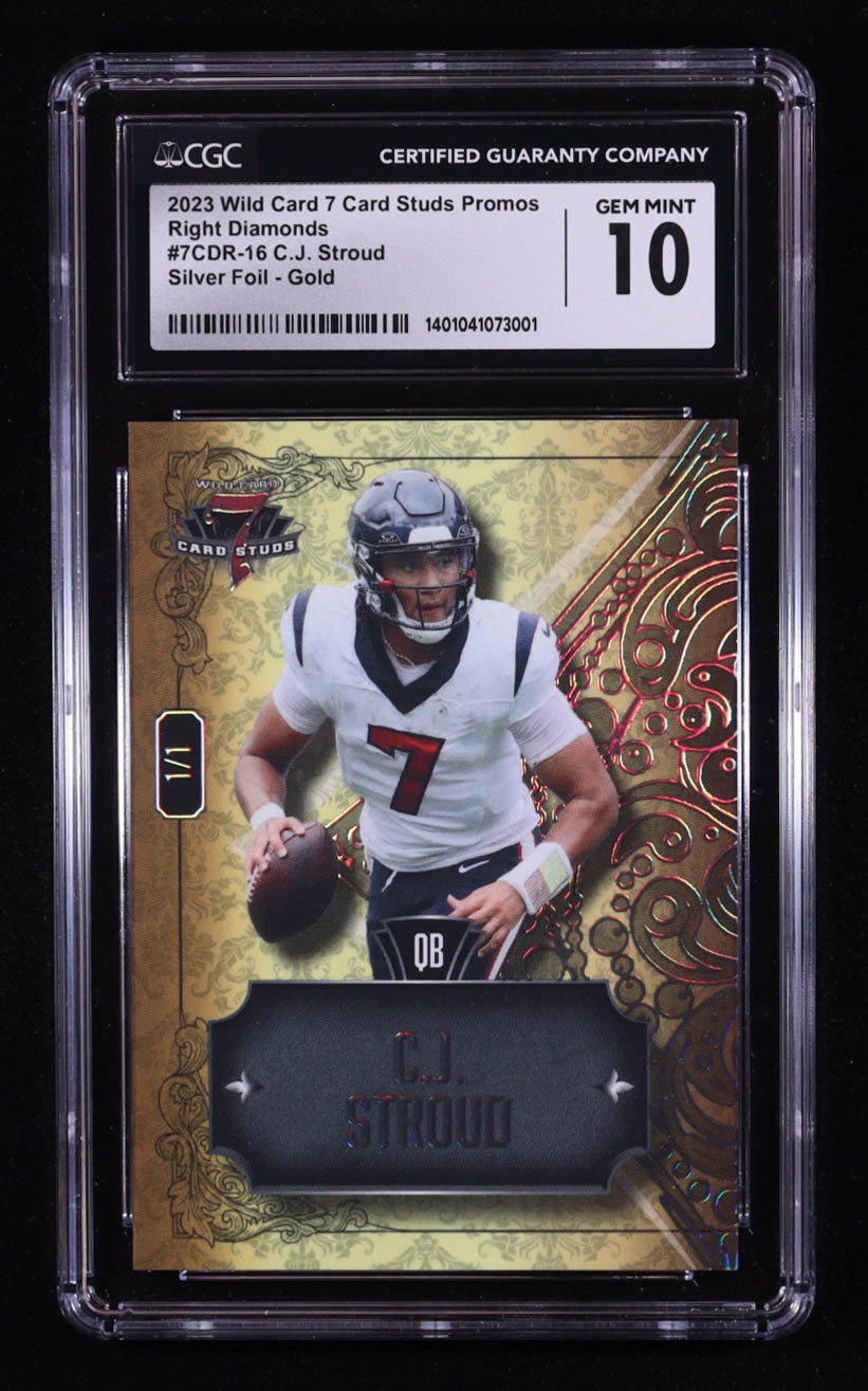C.J. Stroud 2023 Wild Card 7 Card Studs Right Diamonds Silver Foil Gold #7CDR16 #1/1 RC (CGC 10)