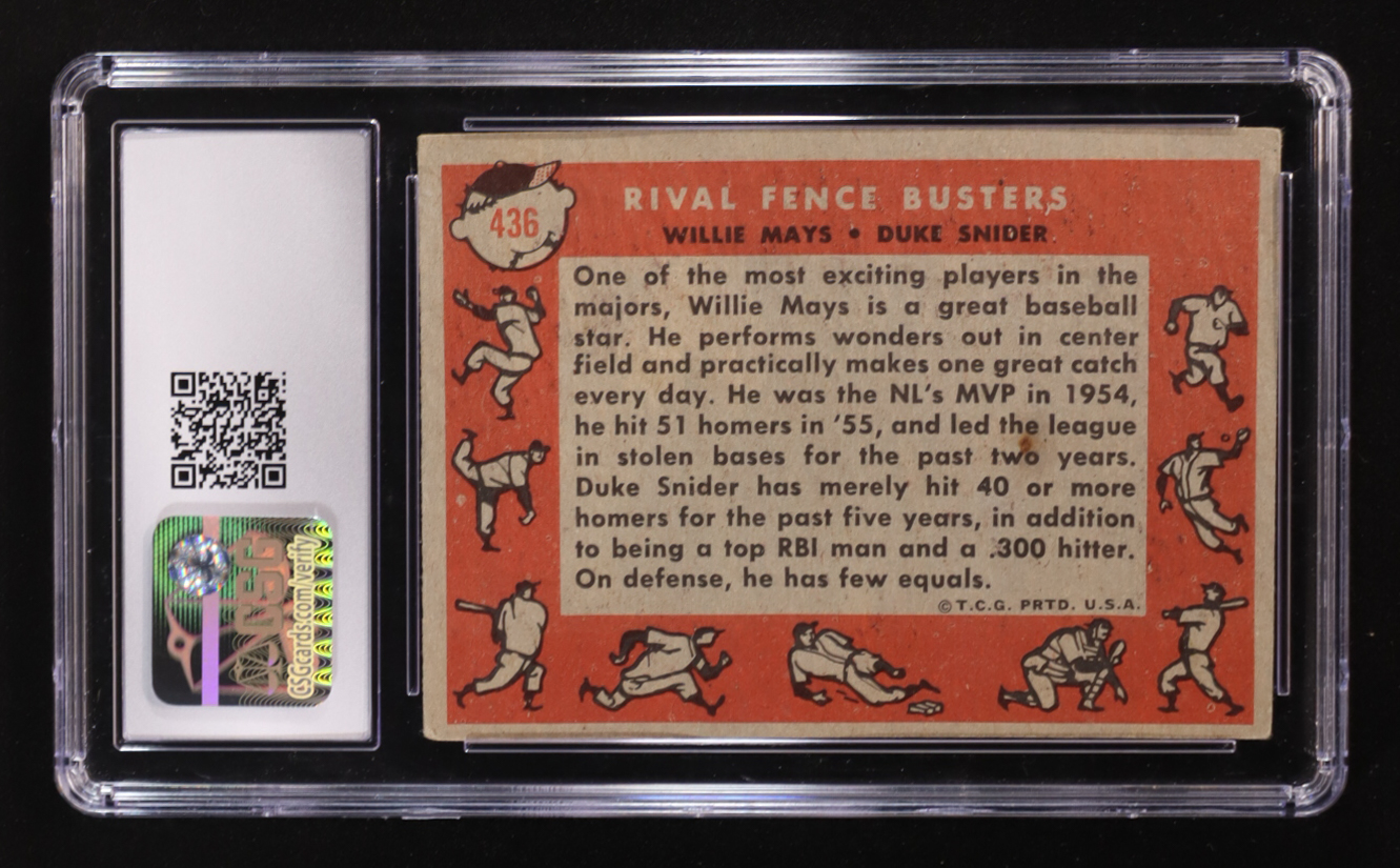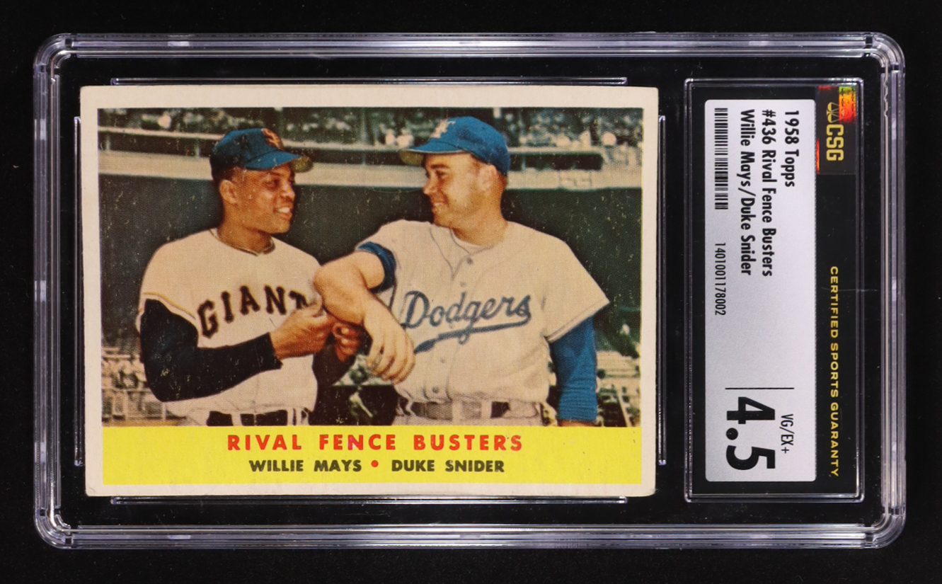 Willie Mays / Duke Snider 1958 Topps #436 Rival Fence Busters (CSG 4.5)