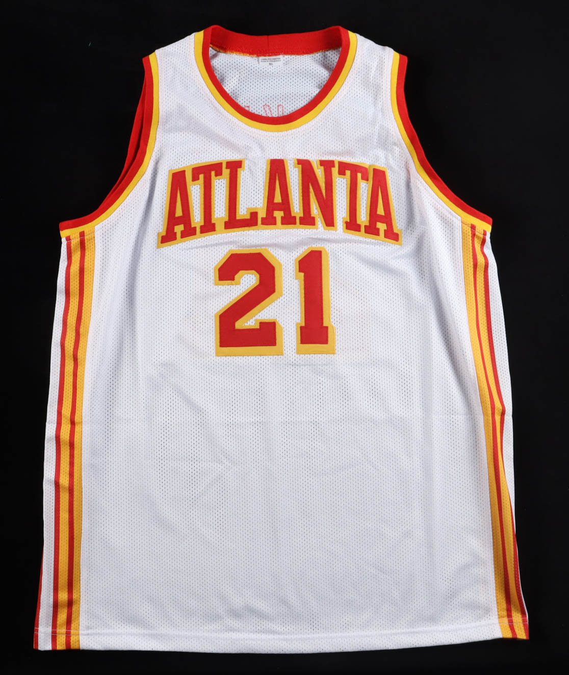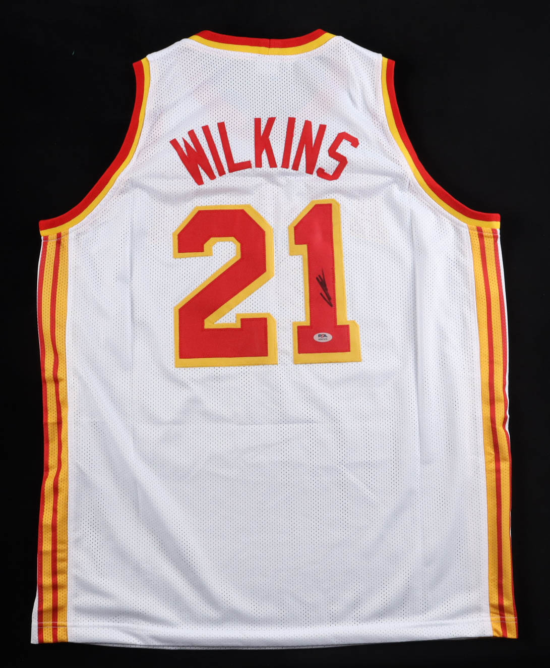 Custom jersey with everything sewn on, size XL. Hand-signed by Dominique Wilkins.