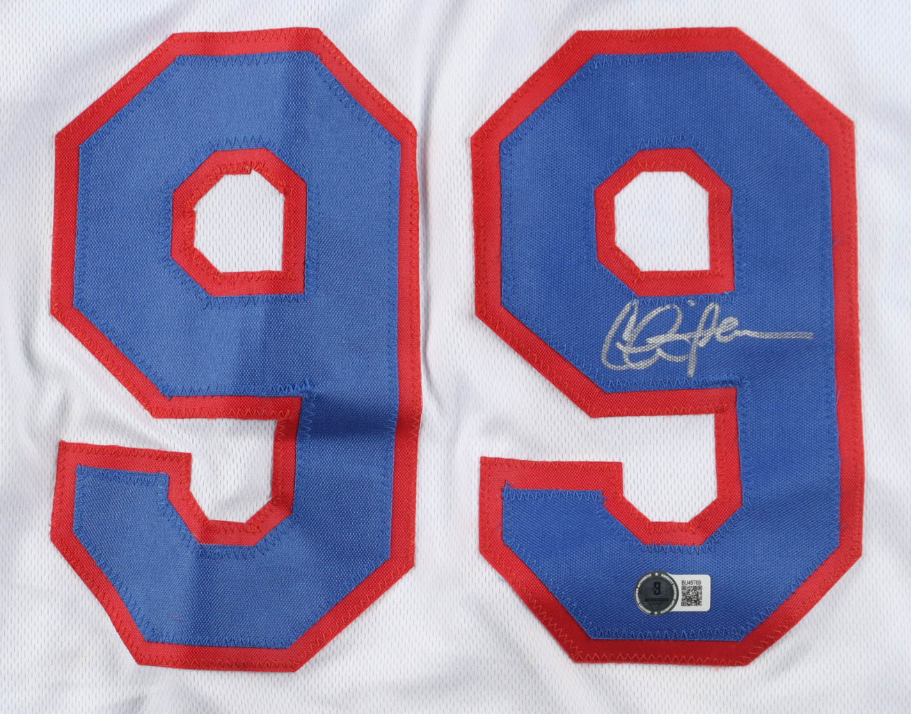 Custom jersey with everything sewn on, size XL. Hand-signed by Charlie Sheen (Ricky "Wild Thing" Vaughn).