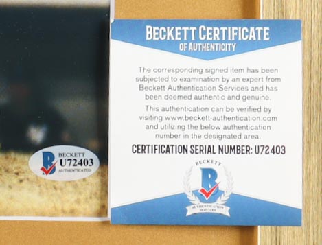 The autograph includes an official Beckett Authentication Services serially-numbered hologram and matching COA for authenticity purposes.