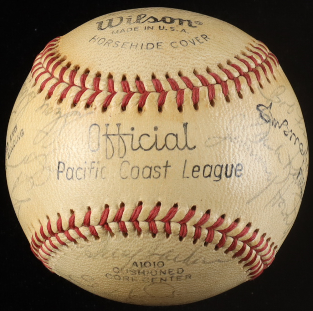 Wilson Official Pacific Coast League Baseball. Hand-signed by Mike Sadek, Floyd Wicker, Rich Robertson, Ed Goodson, Dave Rader, Skip Pitlock, Bernie Williams, Jim McKnight, Chris Arnold, Bob Taylor, Steve Stone, Bobby Fenwick, Jim Howarth, Frank Reberger and (10) others.