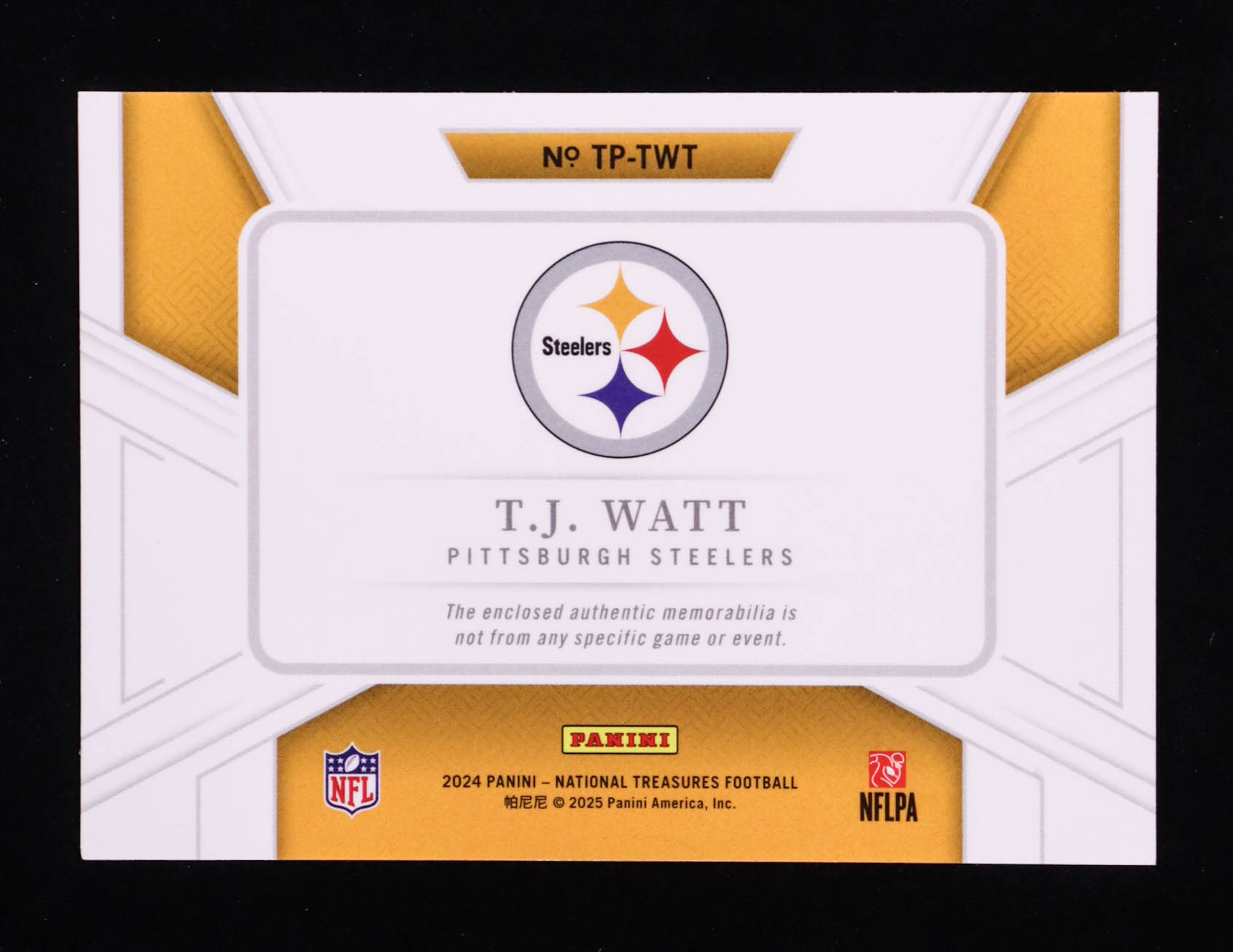 T.J. Watt 2024 Panini National Treasures Treasured Patches Holo Silver #52 #24/25