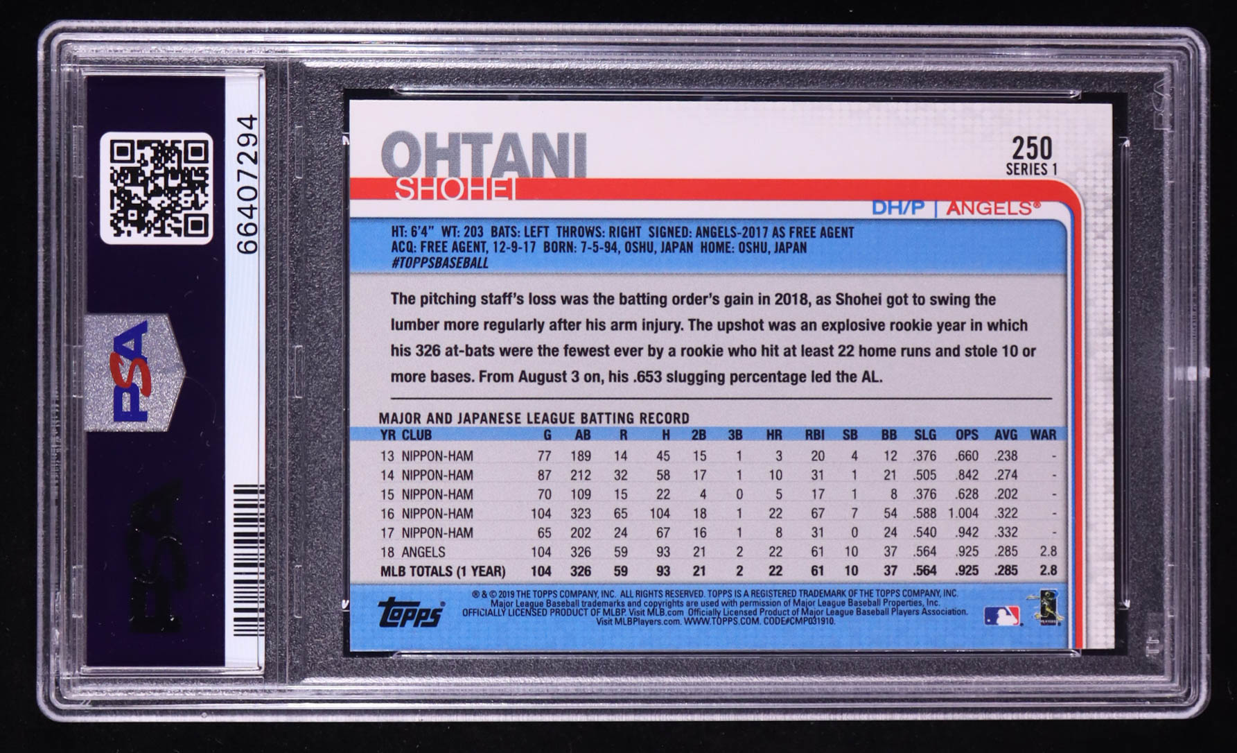 Shohei Ohtani 2019 Topps #250 (PSA 10)