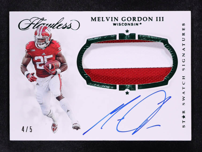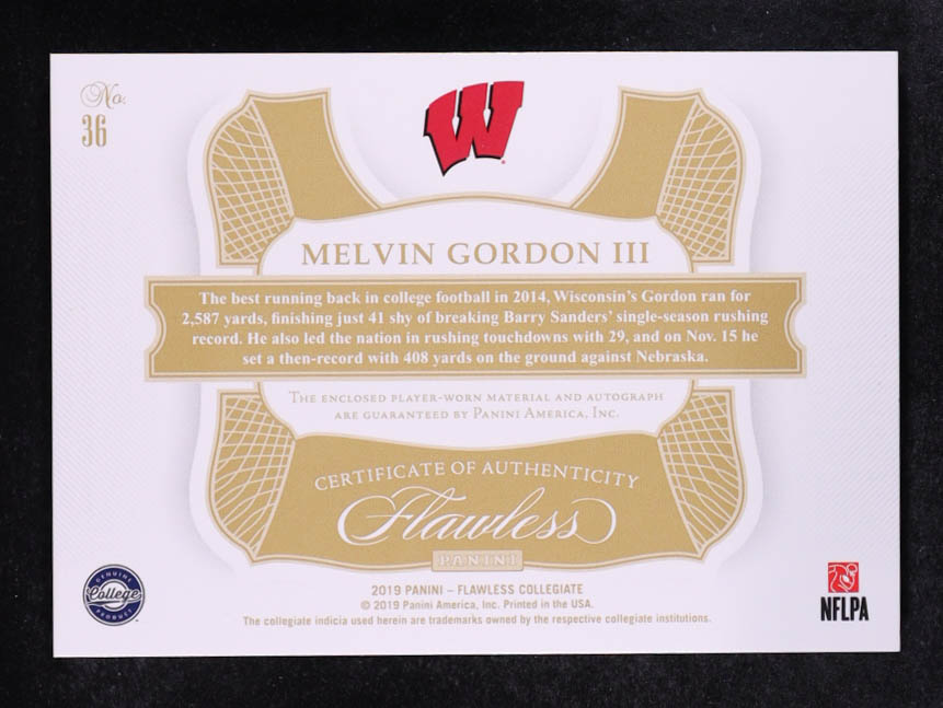 Melvin Gordon 2019 Panini Flawless Collegiate Star Swatch Signatures Emerald #36 #4/5