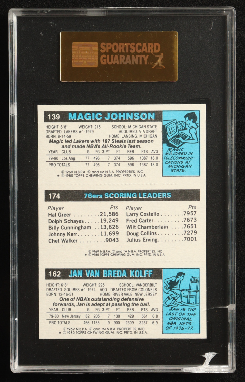 Jan Van Breda Kolff / Julius Erving TL / Magic Johnson 1980-81 Topps #146 (SGC 7.5)