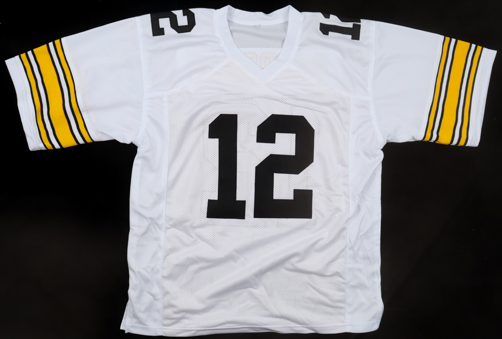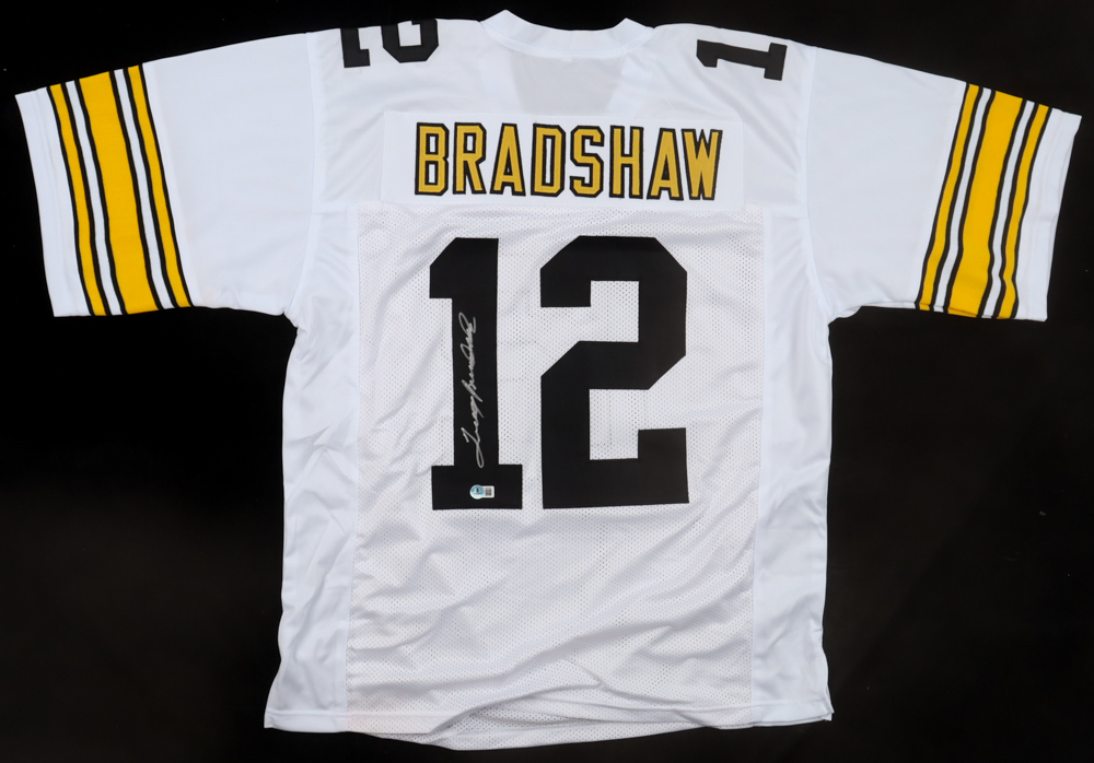 Custom jersey. Everything sewn on, size XL. Hand-signed by Terry Bradshaw (HOF).