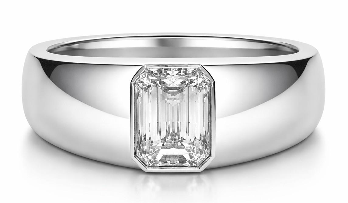 One New Men's Emerald Cut Lab Grown Diamond Ring. Mounting is Made of Sterling Silver and a Ring Size 11.