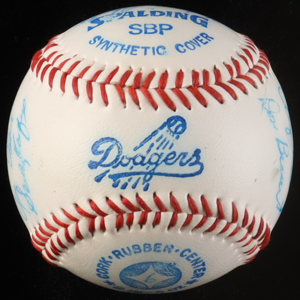 Dodgers Logo Baseball Hand-Signed by (17) with Sandy Koufax, PeeWee Reese, Carl Furillo, Sandy Amaros (JSA)