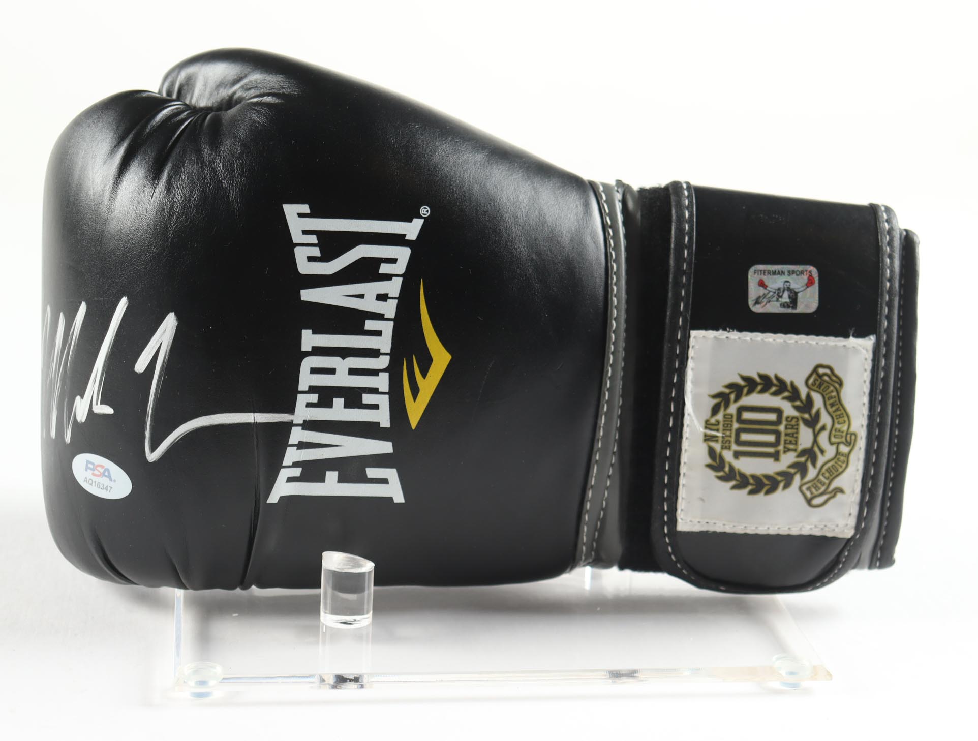 Everlast Retired 100 Year Anniversary Boxing Glove have been hand-signed by Mike Tyson (HOF). Display stand is include as shown. Please refer to photos for more details.