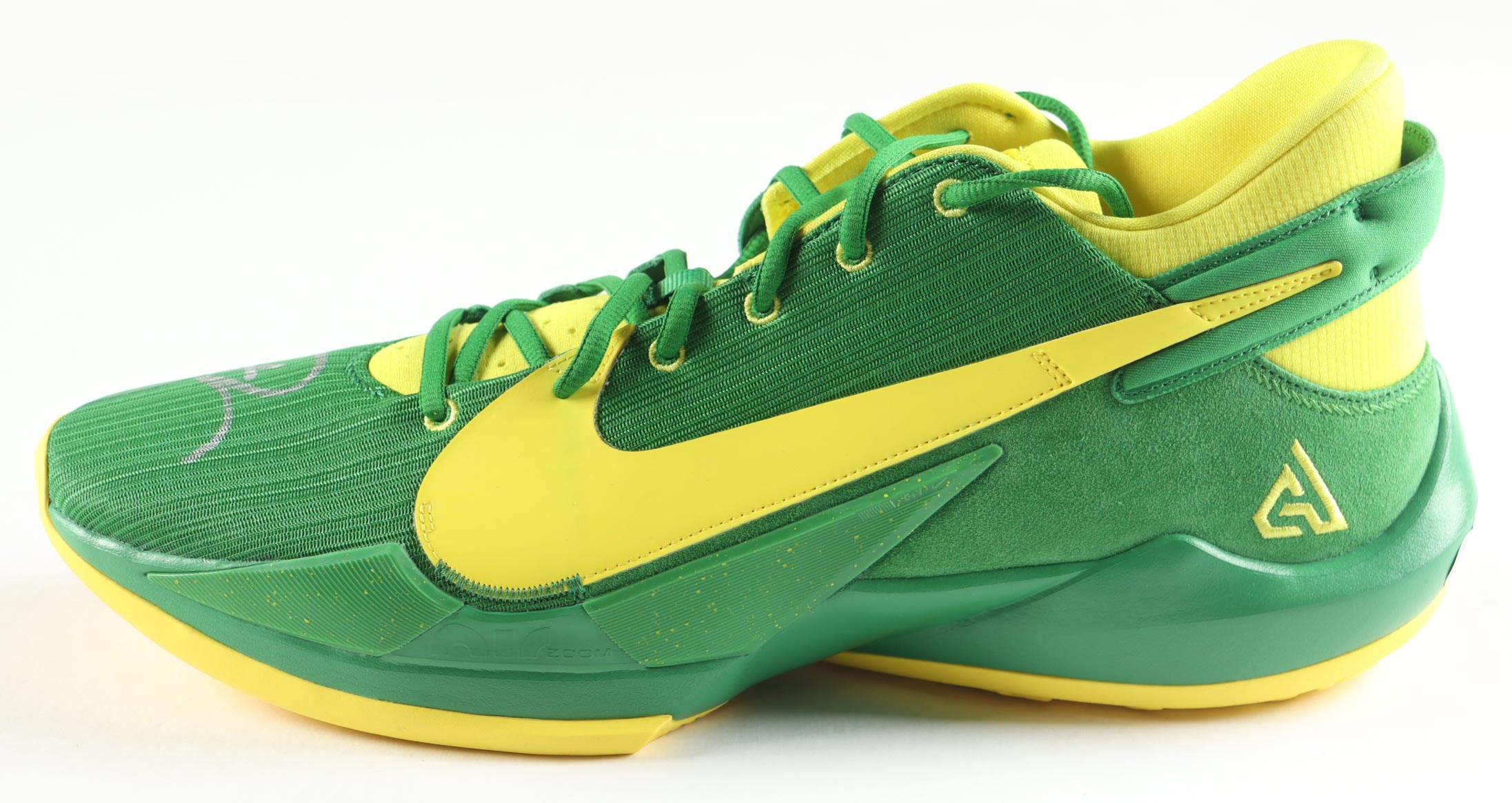 Nike Zoom Freak 2 "Oregon Ducks" Track Shoe, size 17. Hand-signed by Usain Bolt (Team Jamaica). Display stand is included as show.