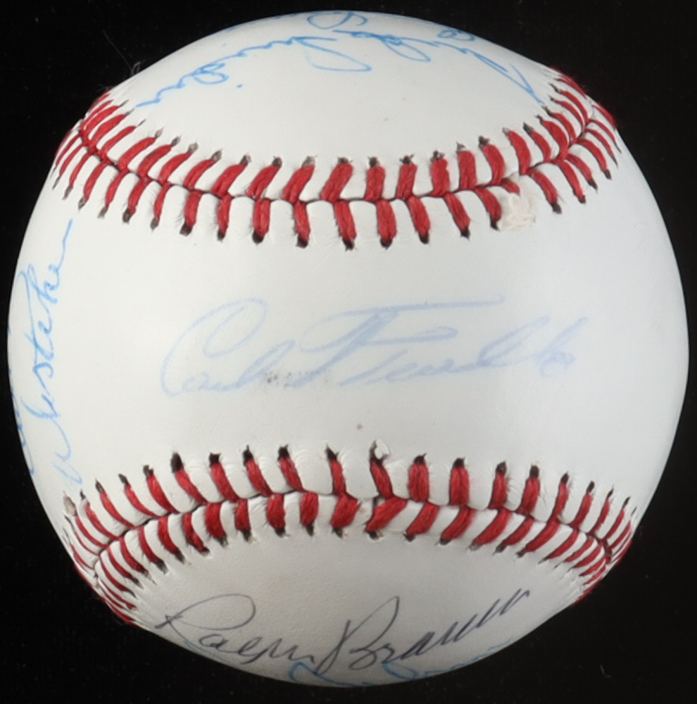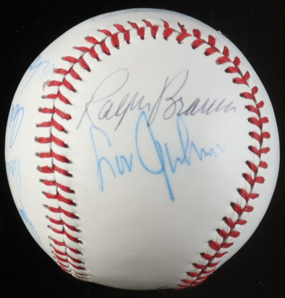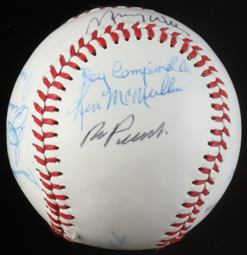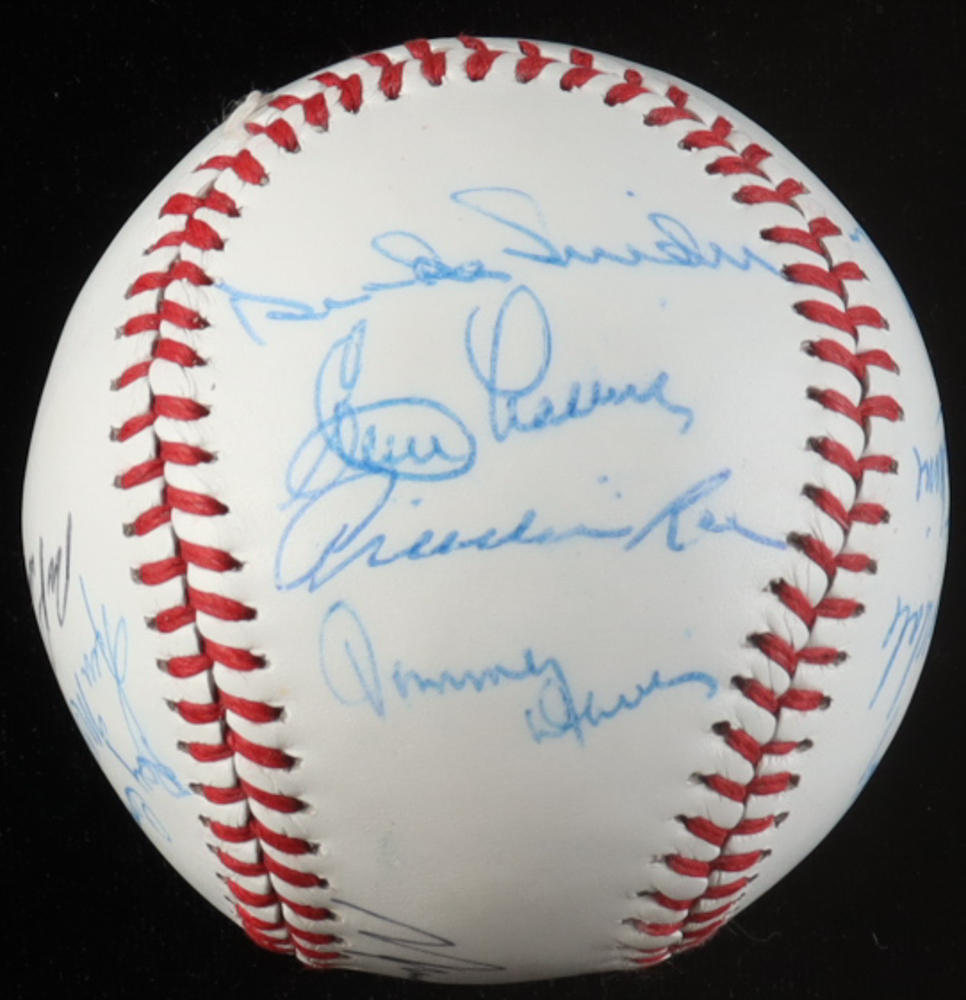 White Leather Baseball Hand-Signed by (15) with Duke Snider, Don Drysdale, Ralph Branca, Ken McMullen (JSA)