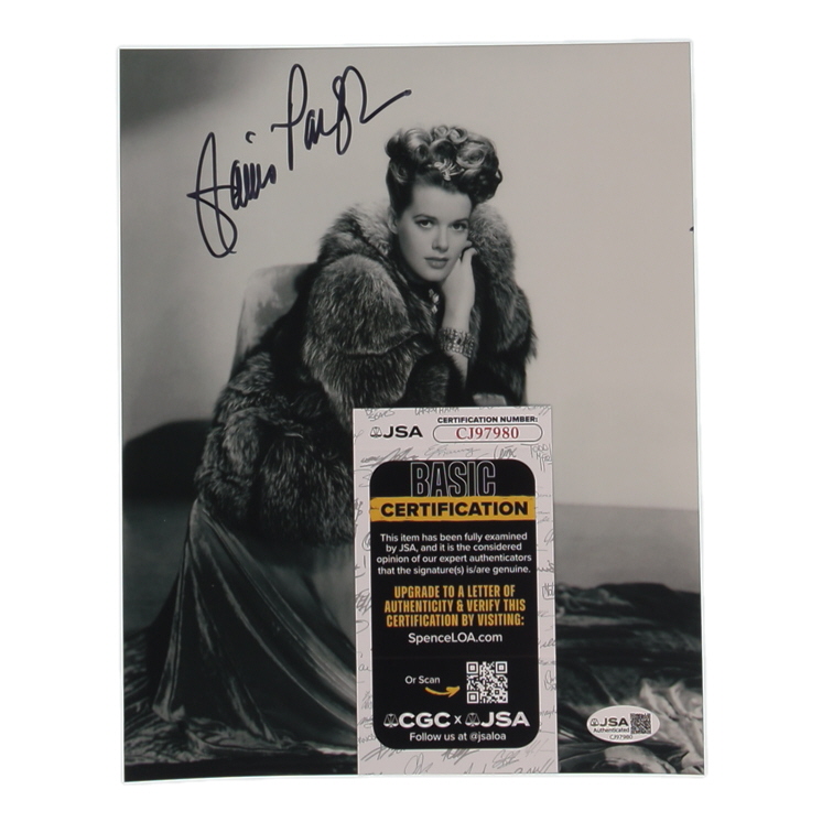 Photo measures 8" x 10" in size. Hand-signed by Janis Paige (D. 2024).