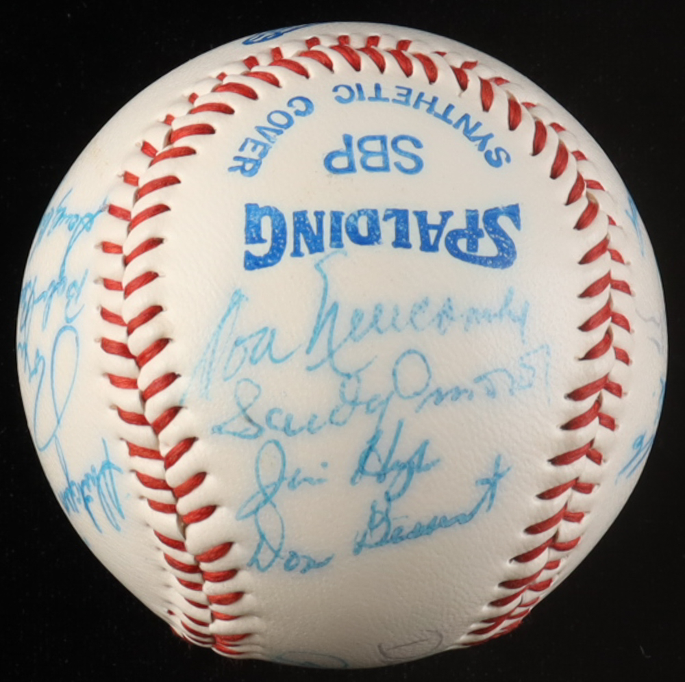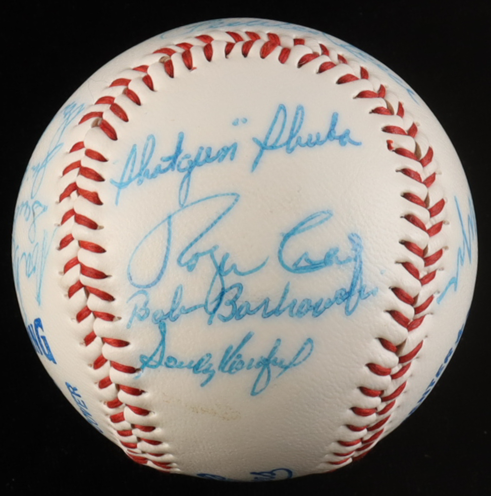 Los Angeles Dodgers Logo Baseball has been hand-signed by the 1955 World Series Champions (15) with Sandy Koufax, PeeWee Reese, Billy Loes, Dixie Howell, George Shuba, Don Newcombe, Roger Craig, Carl Furillo, Sandy Amaros, Roy Campanella and (2) others. Please see photos for details regarding the condition of the item.