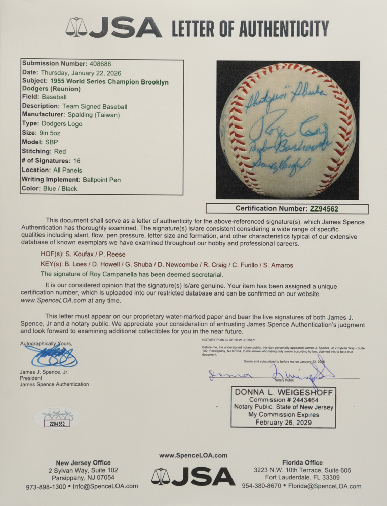 The autograph(s) includes an official James Spence Authentication (JSA) hologram and matching LOA for authenticity purposes.