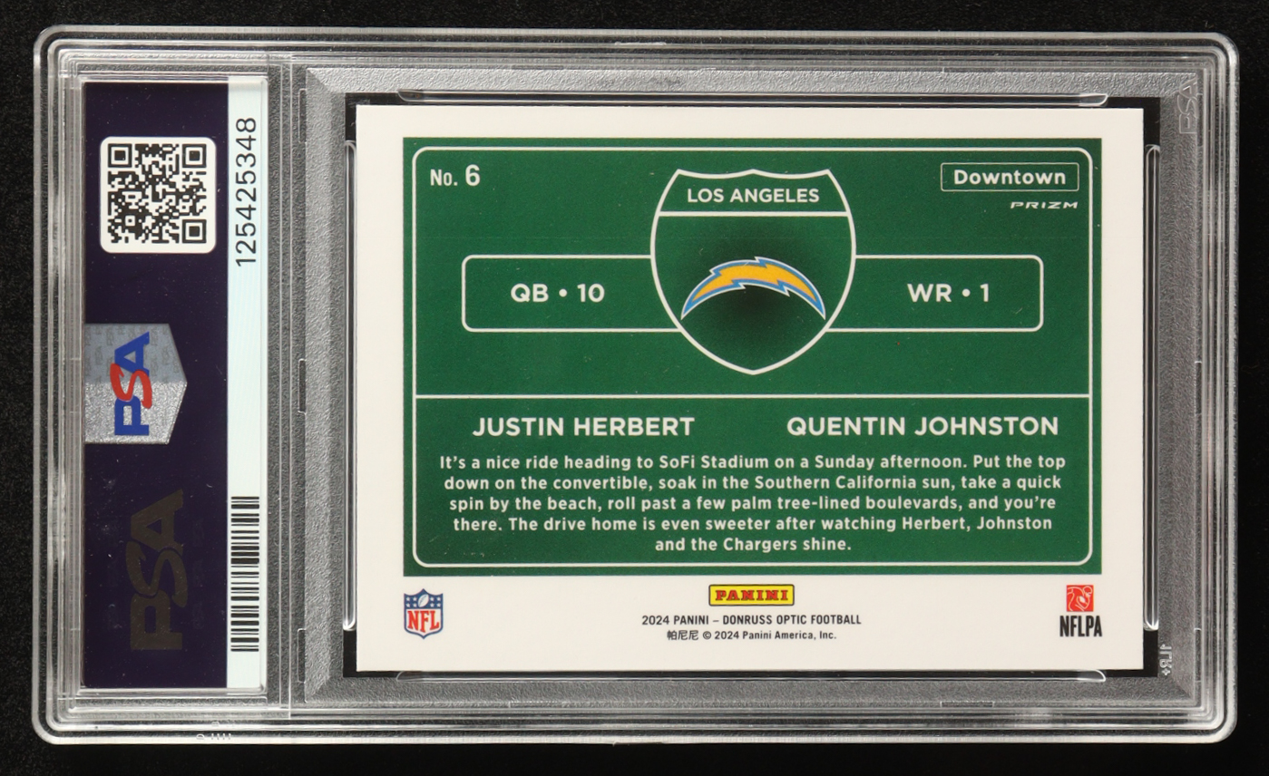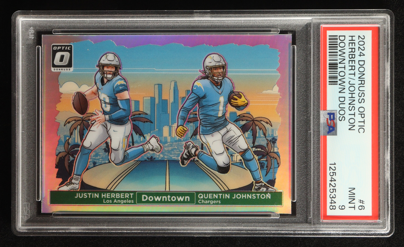 Justin Herbert / Quentin Johnston 2024 Donruss Optic Downtown Duos #6 (PSA 9)