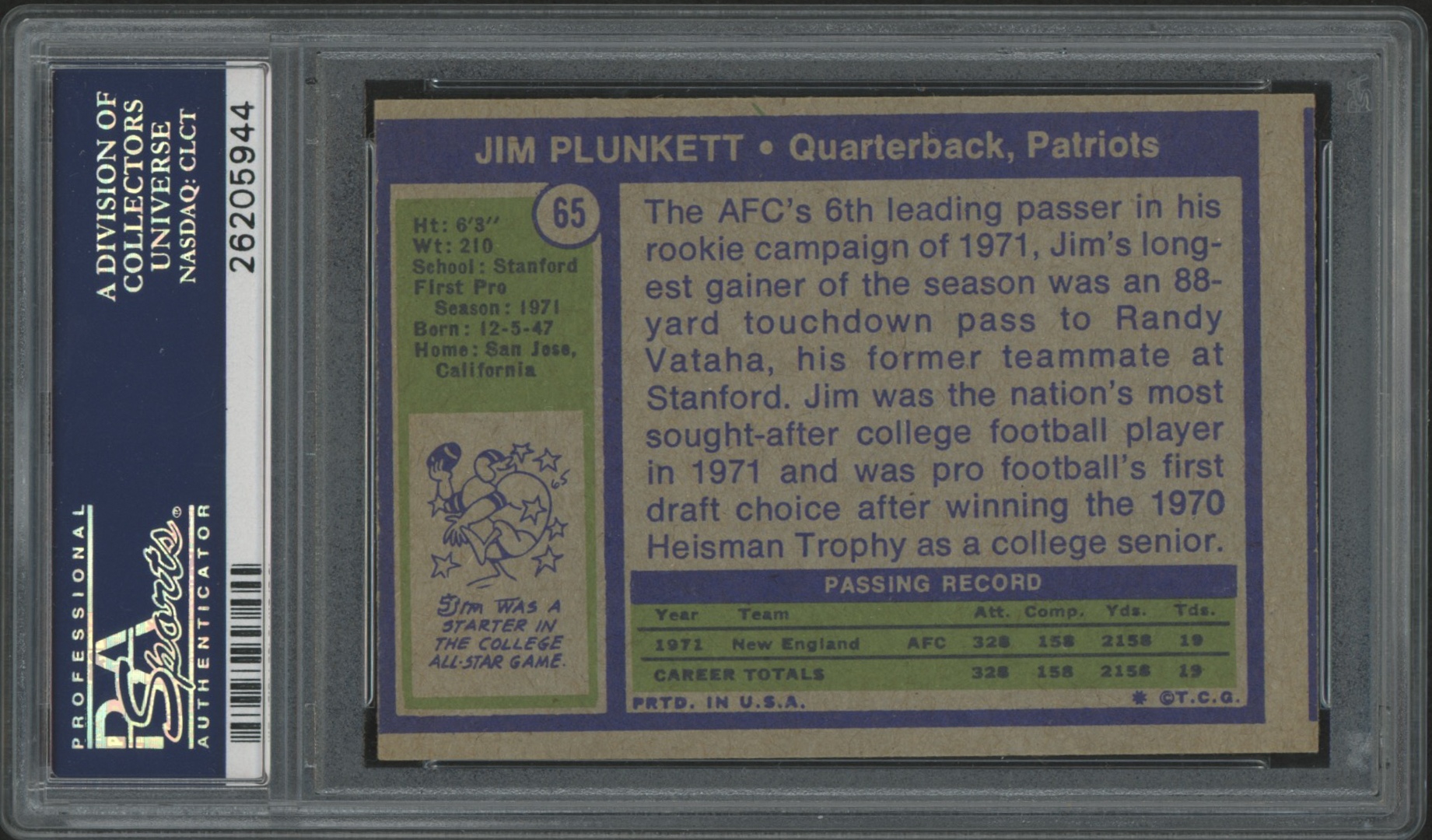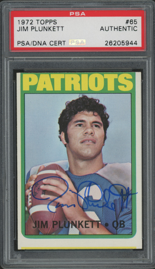 Jim Plunkett Signed Patriots 1972 Topps #65 Rookie Card (PSA Encapsulated)