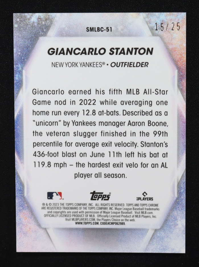 Giancarlo Stanton 2023 Topps Stars of MLB Chrome Black Refractors #SMLBC51 #15/25